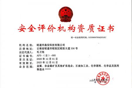 2003年11月10日,昭通市鼎安科技有限公司成立,初始主要從事第三方安全工程技術服務,經多年運營,發展為多專業綜合科技平臺,為社會提供多種專業技術服務工作。 現公司注冊資金為1200萬元,公司法定代表人:毛衛旭。公司主要業務:安全評價、安全標準化評審、安全工程技術服務;環境監測、職業衛生檢測、檢驗;法律訴訟及非訴訟服務;司法鑒定、固定資產投資項目節能服務;工程咨詢;工程測量測繪;安全教育培訓等。是安全生產服務、安全教育培訓機構,也是環境監測和職業衛生服務機構,同時也是綜合的檢測檢驗、綜合科技平臺服務機構。多年來為公、檢、法、司、軍、警、海關、仲裁、安監、工礦商貿企業、社會團體及個人提供多專業技術服務。